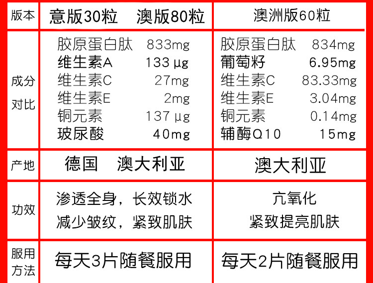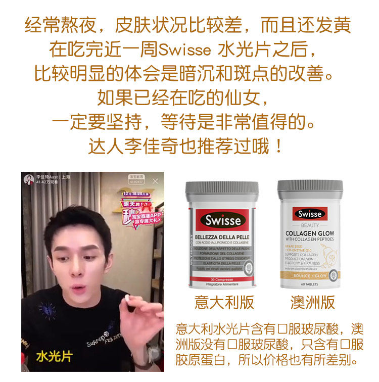 | Вкус: | Австралийская версия таблеток для водного света [60 таблеток, без гиалуроновой кислоты], Австралийская версия таблеток для водного света [80 таблеток, содержащих гиалуроновую кислоту], Итальянская версия столовых таблеток для воды [90 таблеток, содержащих гиалуроновую кислоту] |