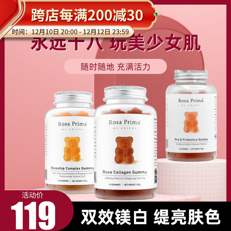 Пробиотик, антивозрастной коллаген с розой в составе, с медвежатами
