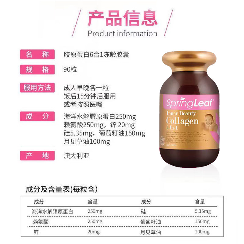 2 бутылки весеннего листа Lvfu 6 -in -1 замороженного возраста капсула 90 виноградных коллагенов ежемесячно посещать масла в течение 27 лет