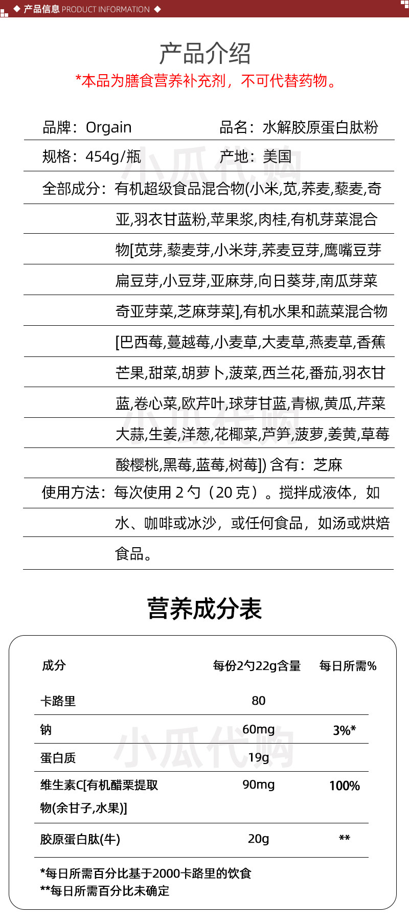 Соединенные прямые почтовые рассылки Органа коллагеновые пептиды гидролизованные коллагеновые пептиды порошок 20 г травы кормления 454 г