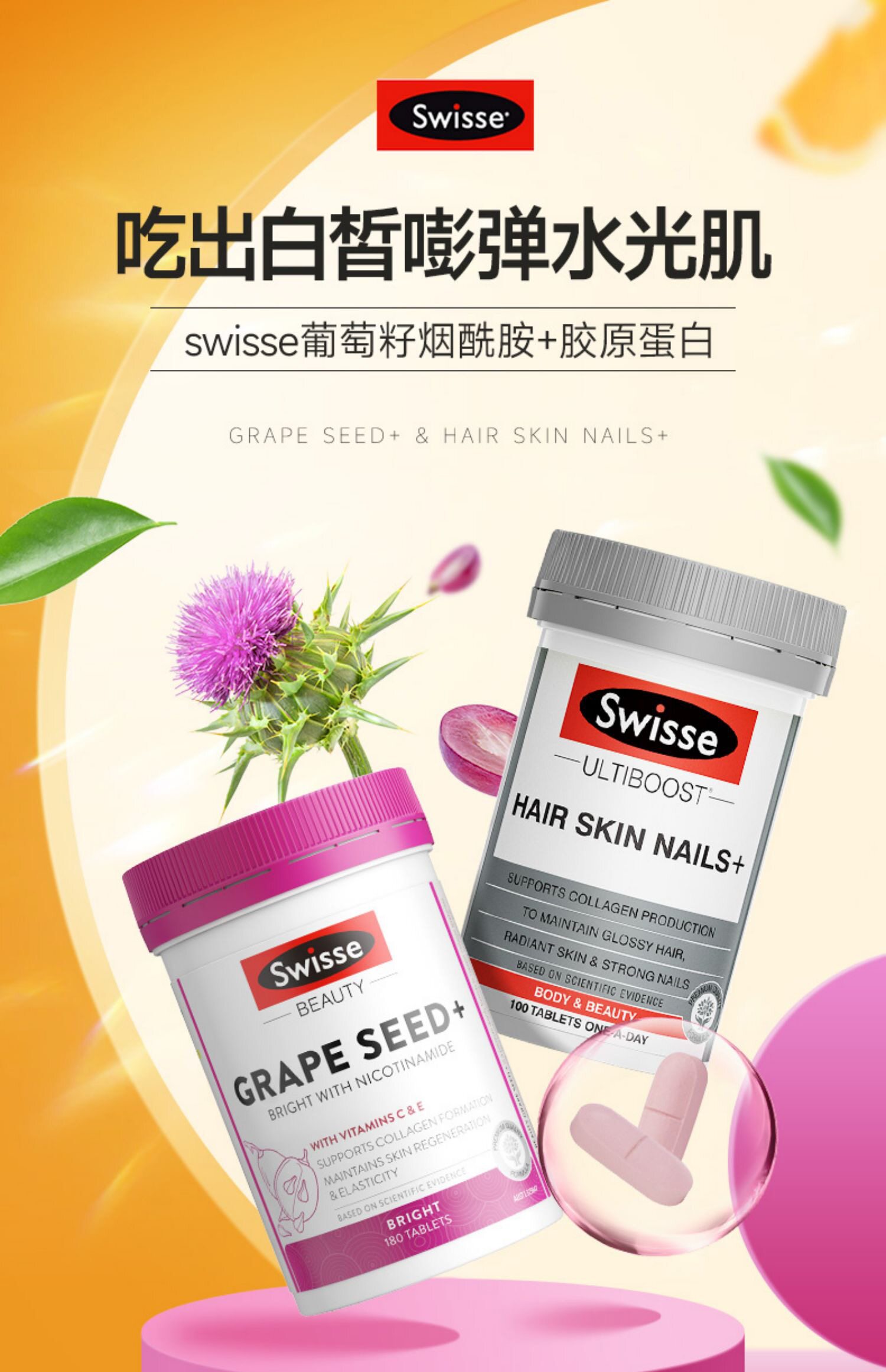 [2 бутылки] Коллагеновый пептидный официальный флагманский магазин подлинный отбеливающий таблет
