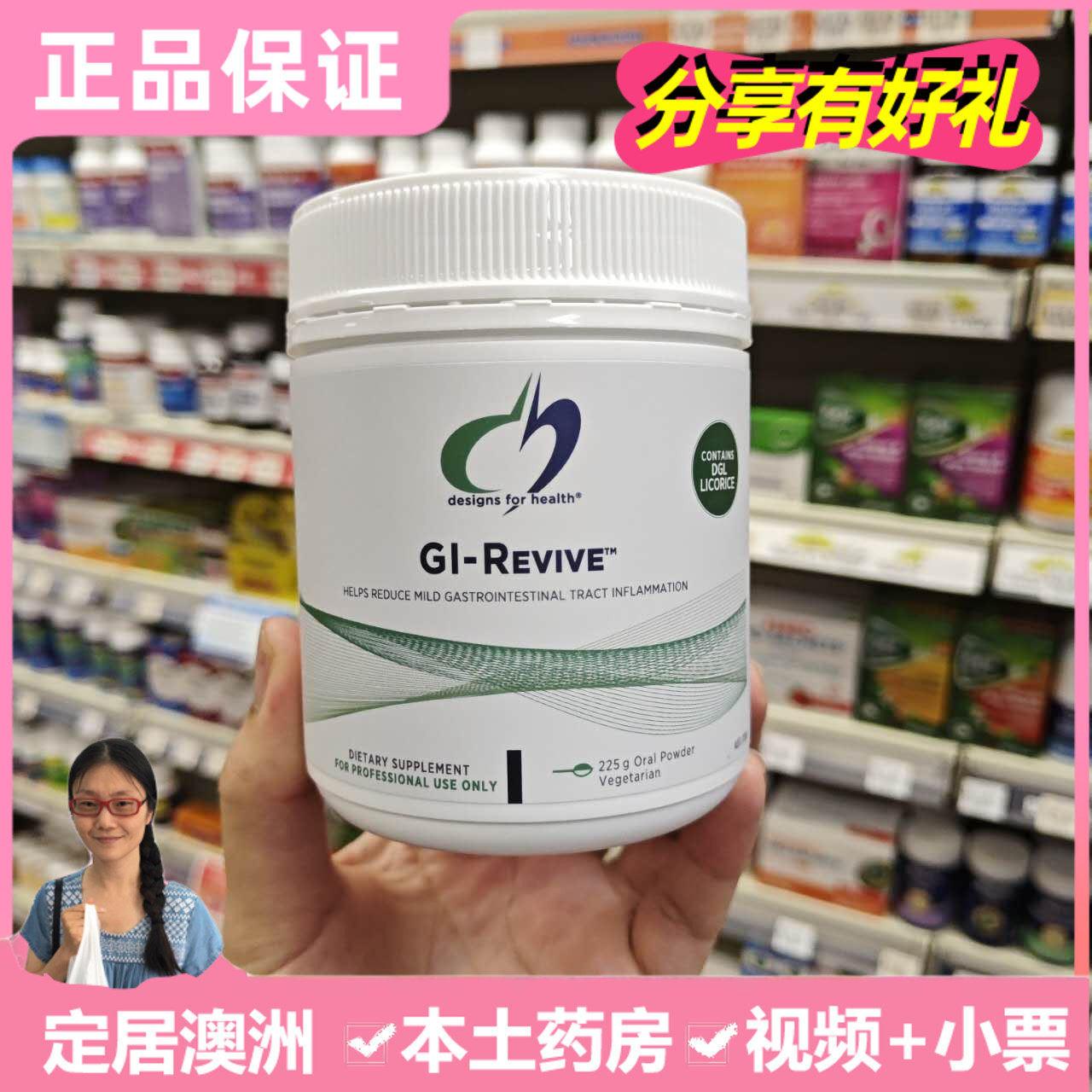 В наличии Australian Designs for Health DFH 225 г пищевые волокна желудочно-кишечный иммунитет карнозин цинк