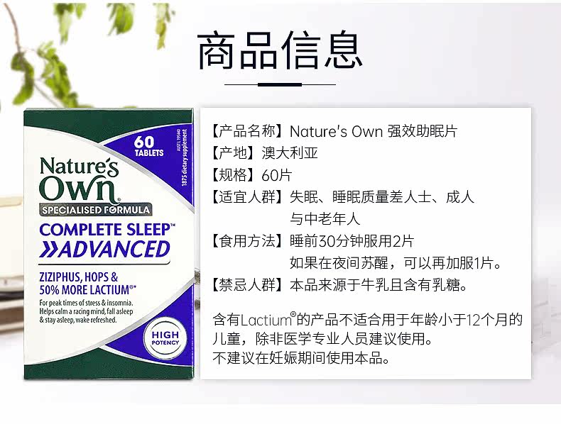 Австралия Натураун натуральный австралийский натуральный молочный сон пептид не -диннер спящий рубашки спящий 60 таблетки