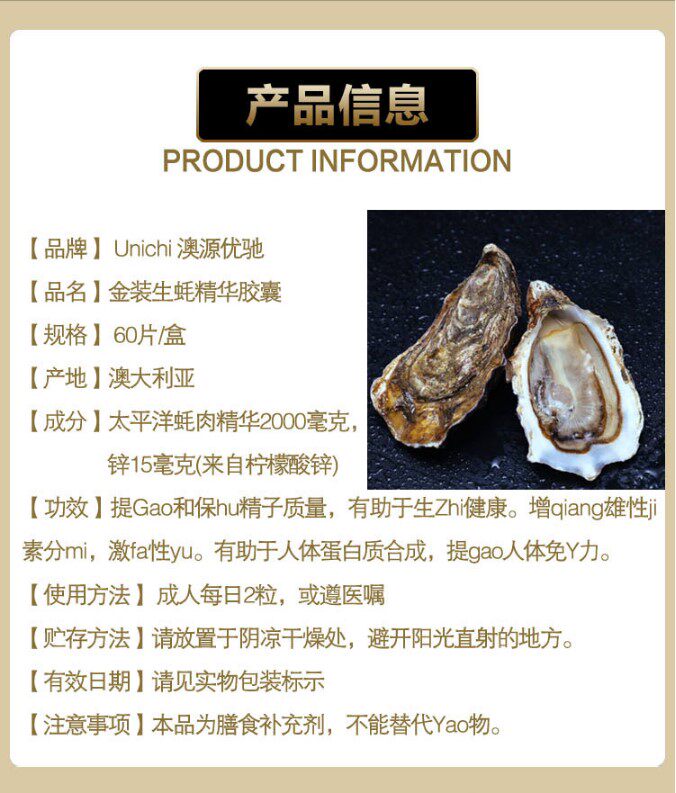 Австралия Unichi Gold Oyster Essence Essence Oyster Zinc Импортированный мужской спорт 60 Новая упаковка Бесплатная доставка