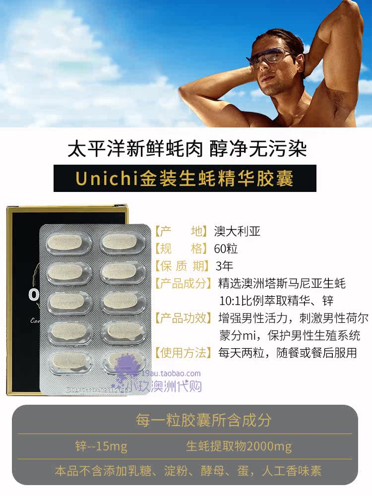 Австралия Unichi Oyster Slices Essence Essence Капсула цинк цинк цинк и селен 60 капсулы добавка тела силу мужская жизнеспособность спермы
