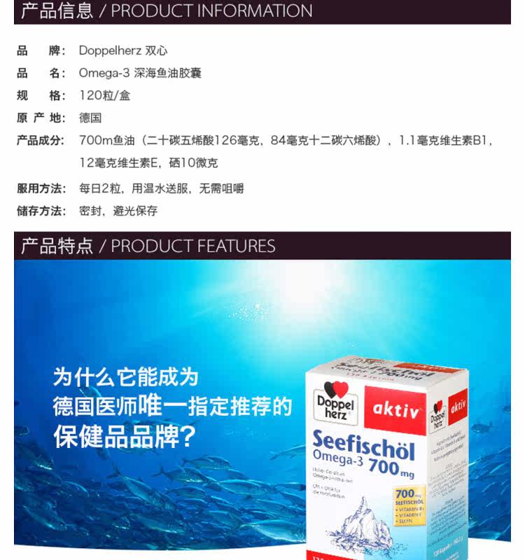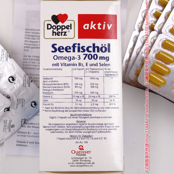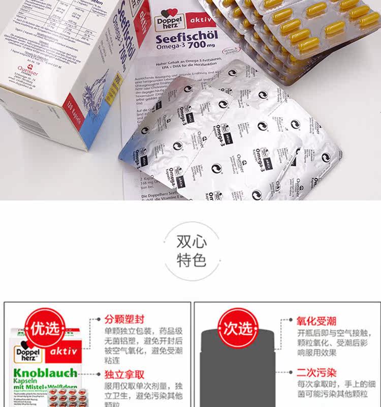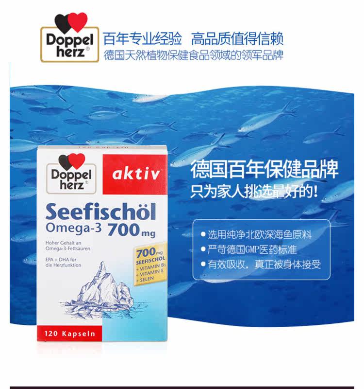 Германия Doppelherz глубоко морской рыбий жир омега3  120 капсул два месяца