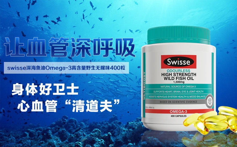 Австралия Swisse Swelle Wild -Deep -Sea рыбьего жира, кондиционируя три высоких кровеносных сосуда 400 дха омега3