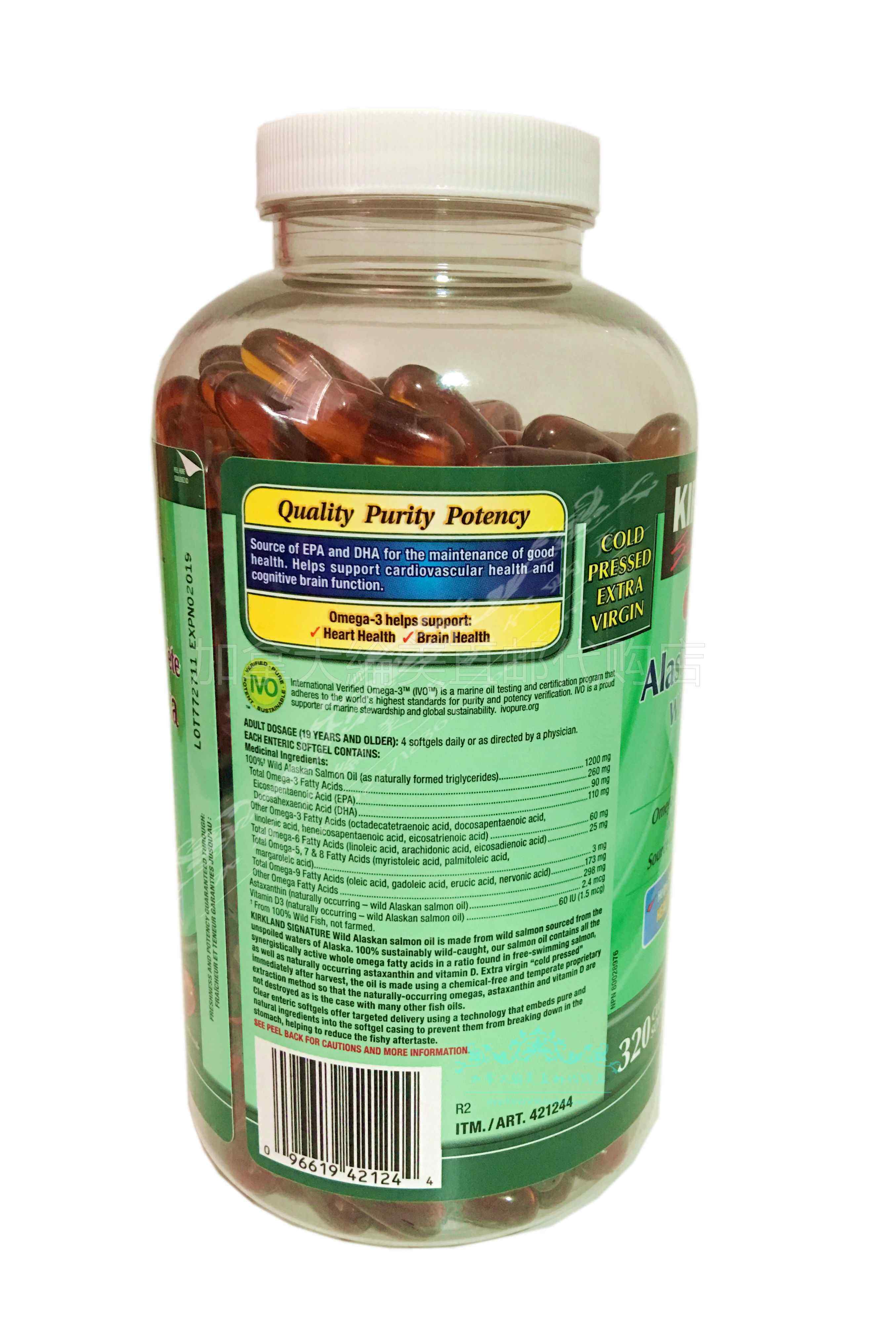 &Естественное масло дикого лосося NBSP; Киркленд Коленд богато омега-3 жирными кислотами, EPA и DHA, является незаменимым драгоценным жирным кислотой в здоровой диете.Продукт выбирается в качестве сырья верхнего лосося в глубоком море Аласки. Он свежий, чистый, загрязняющий без тяжелых металлов и не содержит холестерина, сахарозы, крахмала, натриевой соли, жевательной резинки и лактозы.