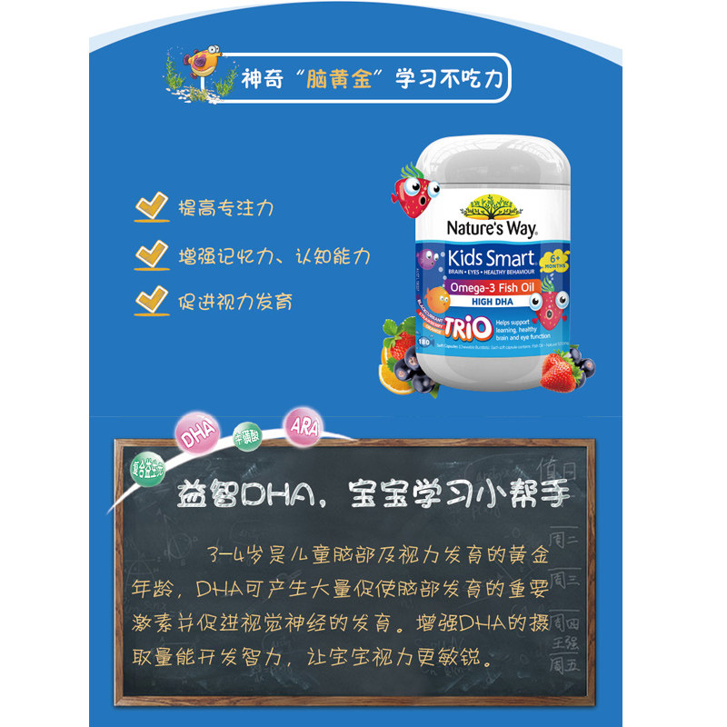 Австралийский путь природы Jiaer Simin's Детский детский тремя капсулы рыбного масла рыб