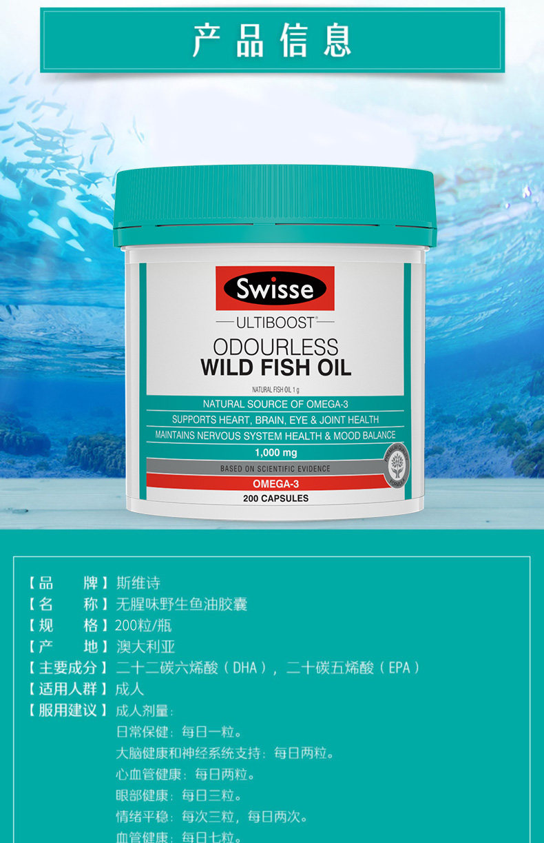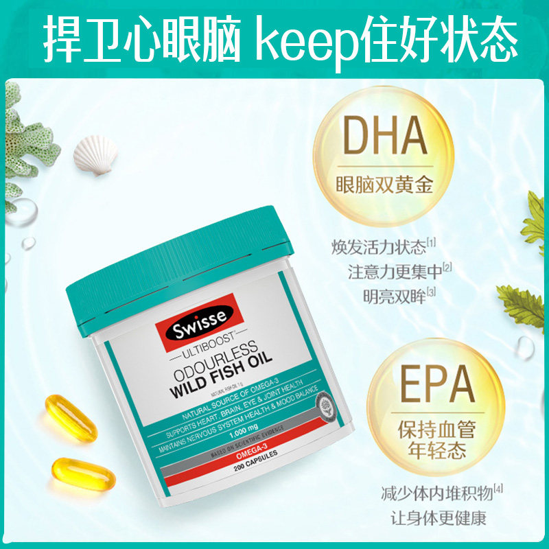 Австралийская стихотворение Swisse Swelle Deep Sea File File File Fife Capsule у пожилых капсул в печени для пожилой трески DHA1000 мг200