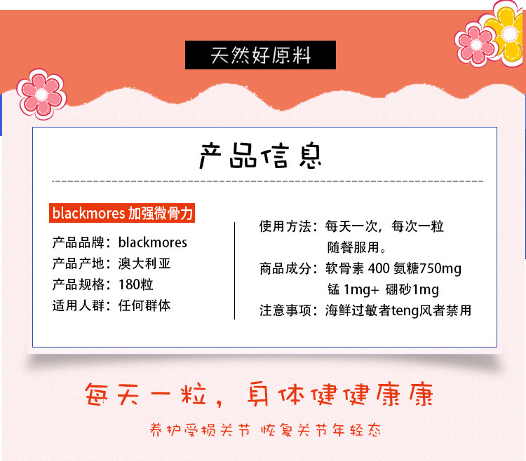 Австралия Австралия Blackmores Vitamin Bone Power Artal Spirit 180 Грамино -амино сахар амино глюкоза кость витамин