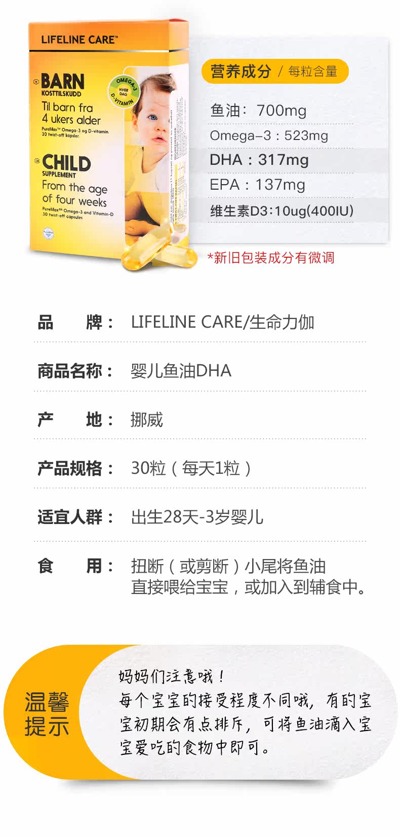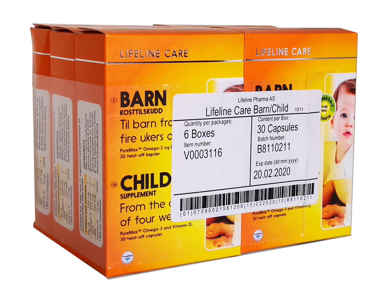 6 ящиков ◆ Lifeline Care, Норвегия, детский рыбий жир Норвежский маленький рыб, малышка DHA D3, добавка кальция Витамин D