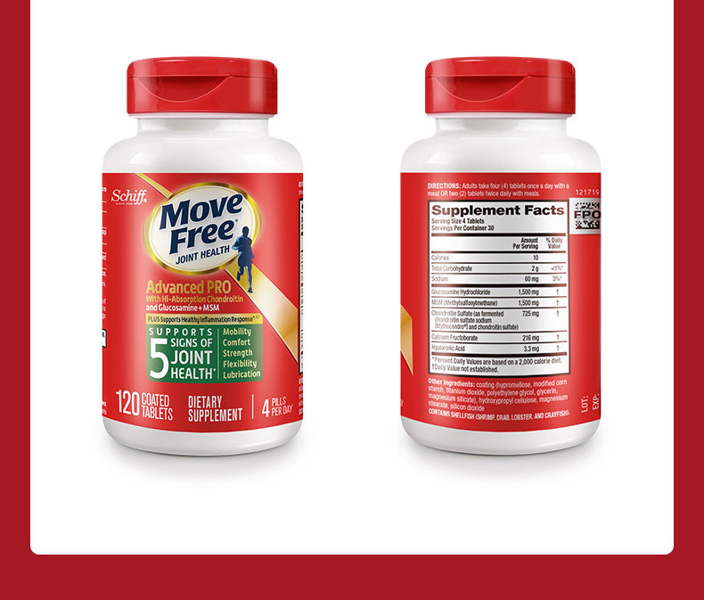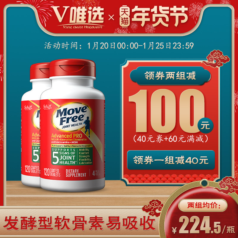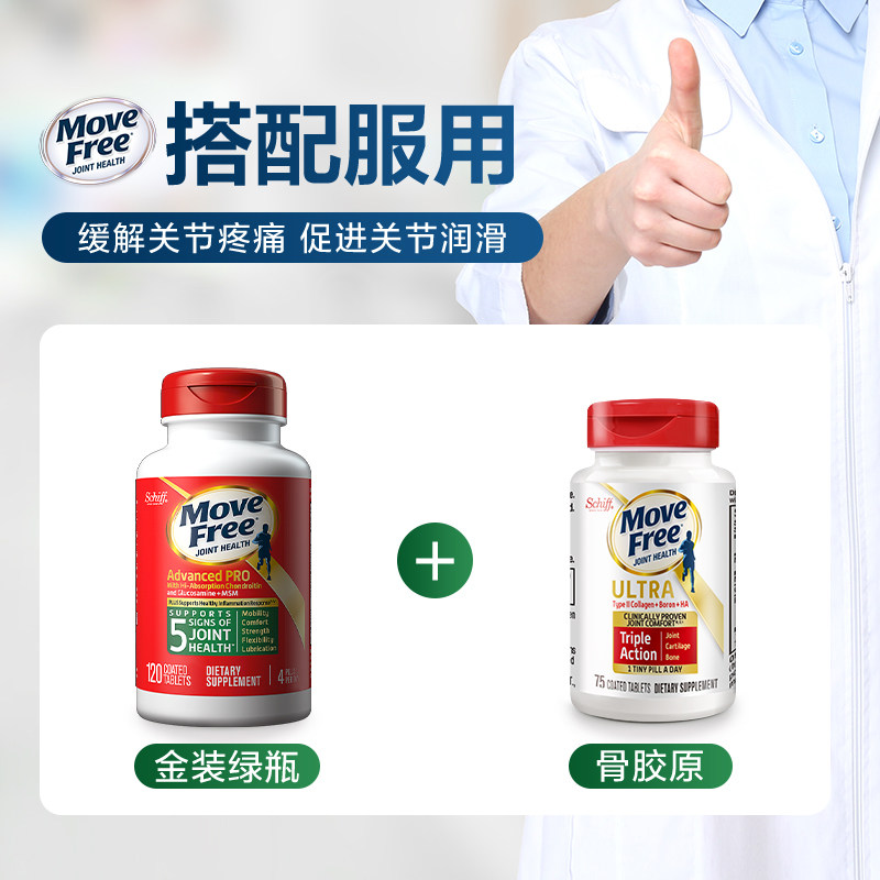 Американский Schiff Move Free/Yijian Ammonia Sugar Cartilain плюс MSM Gold Green Bottle 120 Две бутылки