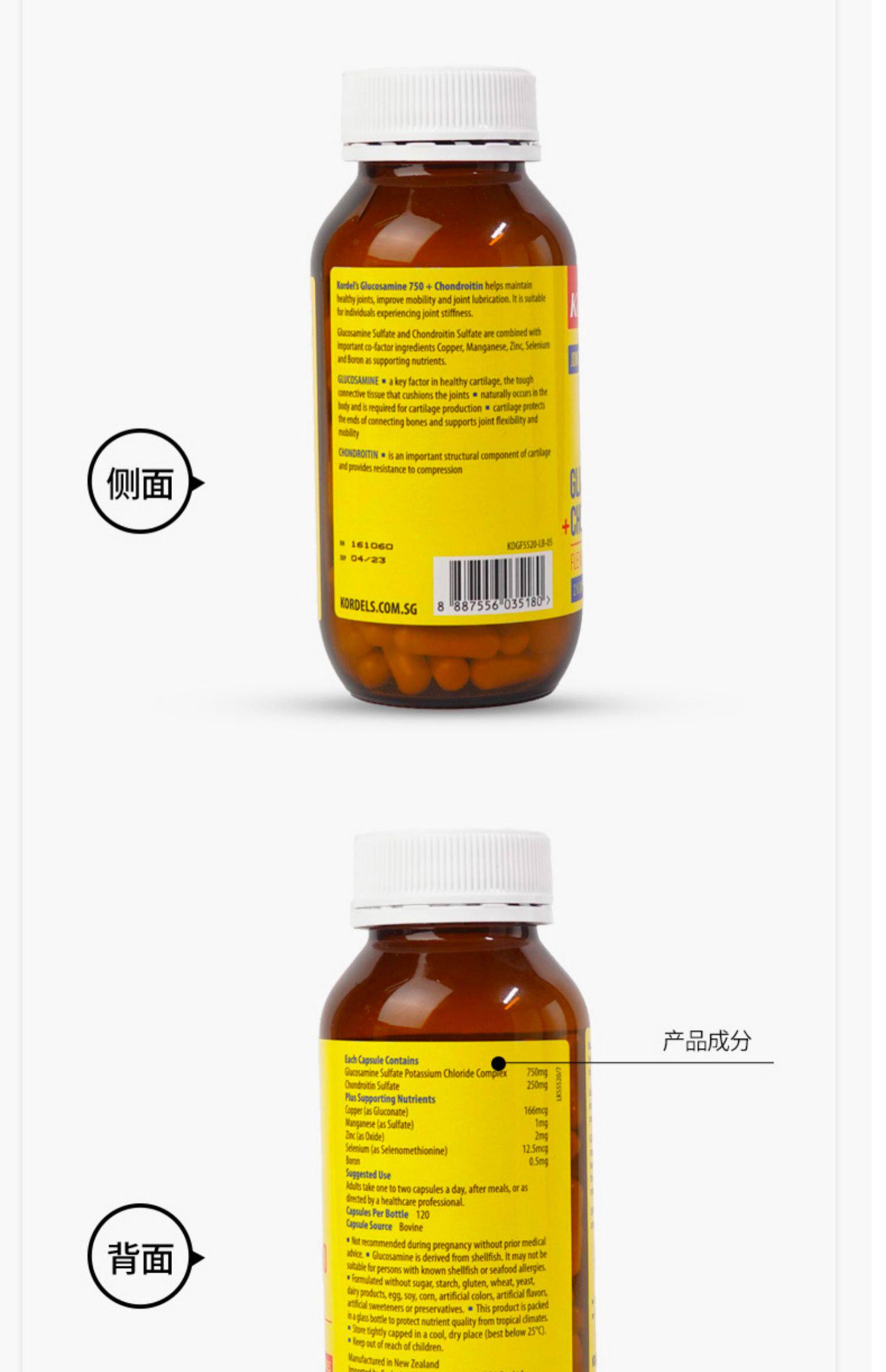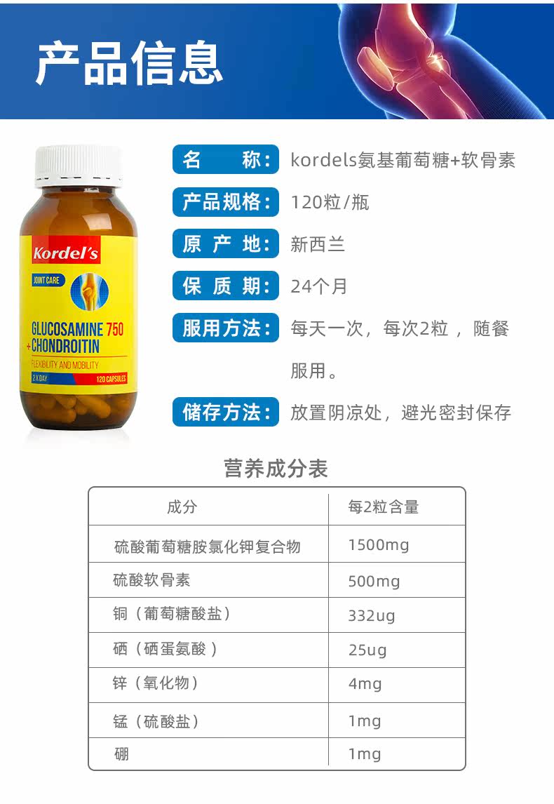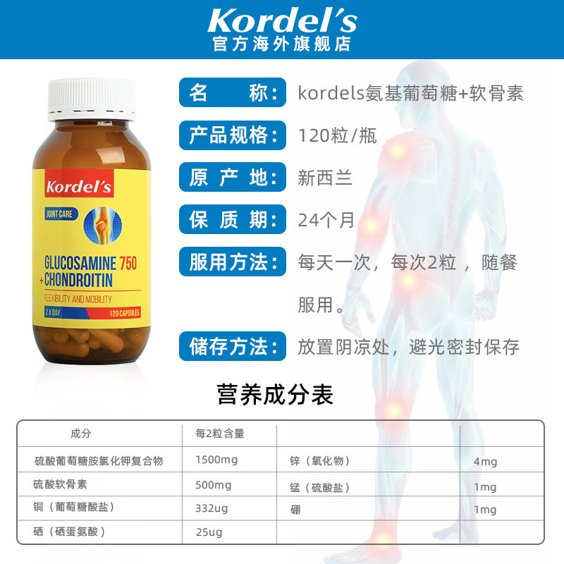 Kordels Импорт амино глюкоза, остео остеоскальная дополнительная кальциевая амино гликостерин хрящевые капсулы 120 зерна*2