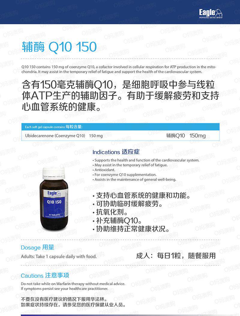 Австралийский врач рекомендует Eagle High Content Q10 Coenzyme 150 мг для ухода за сердцем [2 бутылки прямой почтовой почты]