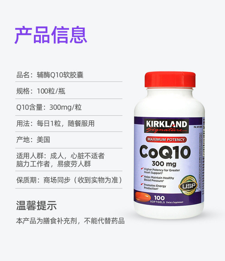 US Direct Mail Kirkland Coenzyme Q10 Soft Capsules Оригинальные импортные взрослые сердца 100 капсул 2 бутылки