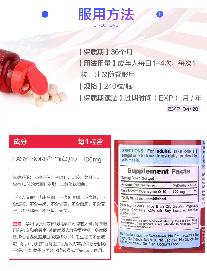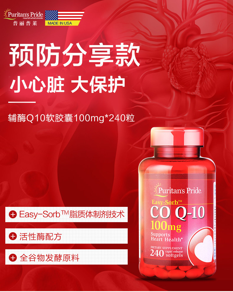 Pribela 10 Coenzyme Q10 Оригинальный импортный COQ10 Soft Capsule Ql0 Coenzyme 100 мг*240 капсулы