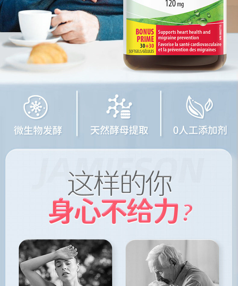 Мягкие капсулы коэнзима Q10 Джеймисона 120 мг * 60 капсул, импортированные из Канады. Джеймисон защищает миокард сердца.