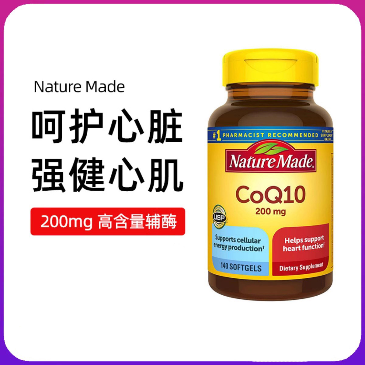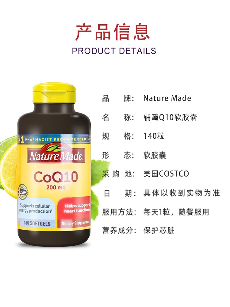 Spot US Nature Made CoQ10 Apzyme Q10 Soft Capsule 140 зерна 200 мг/90 капсул 400 мг