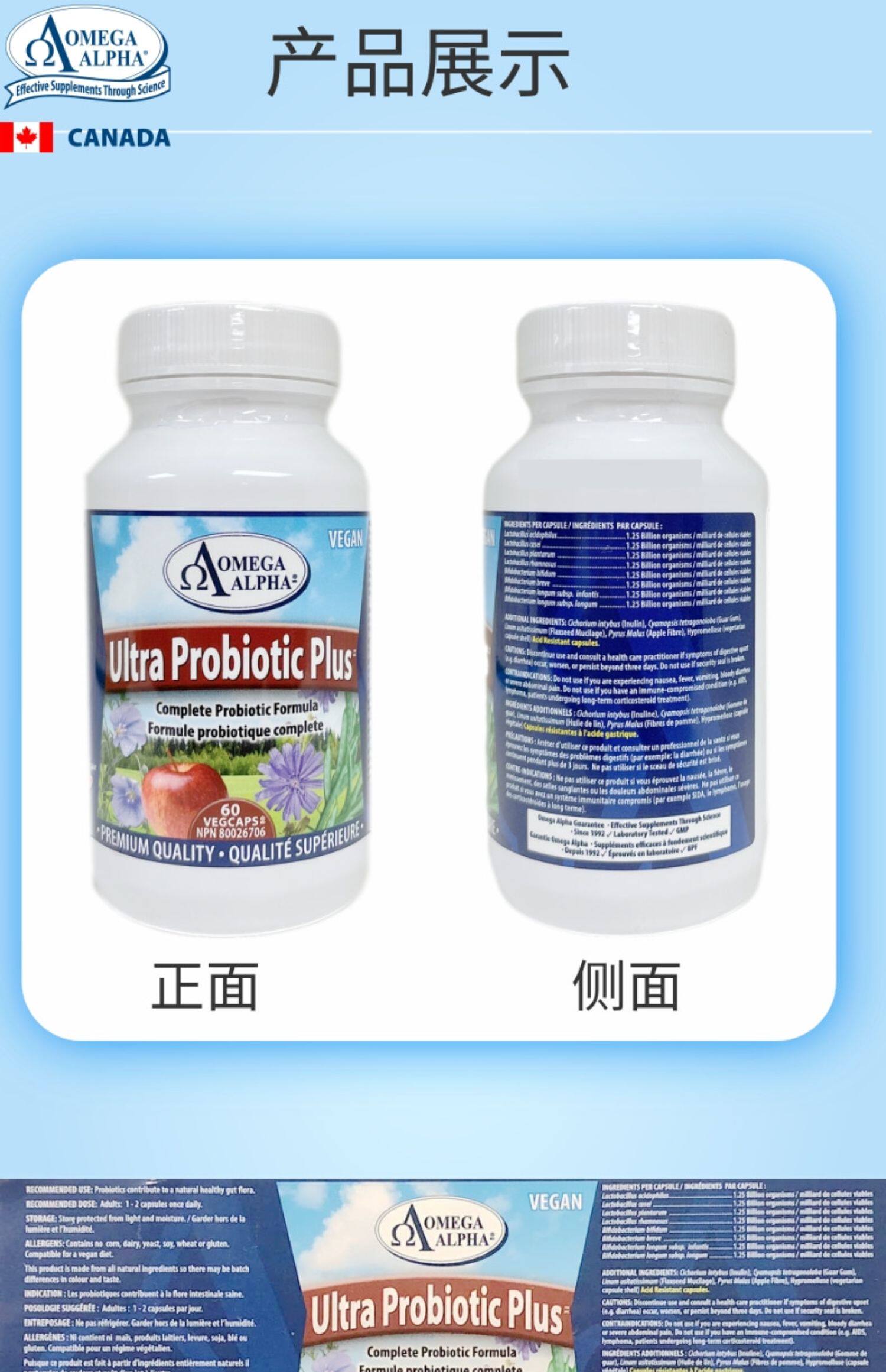 Канада импортированная омега альфа -омега пробиотическая пробиотическая пробиотическая желудочно -кишечная кондиционирование помогает расщеплять 60 капсулы