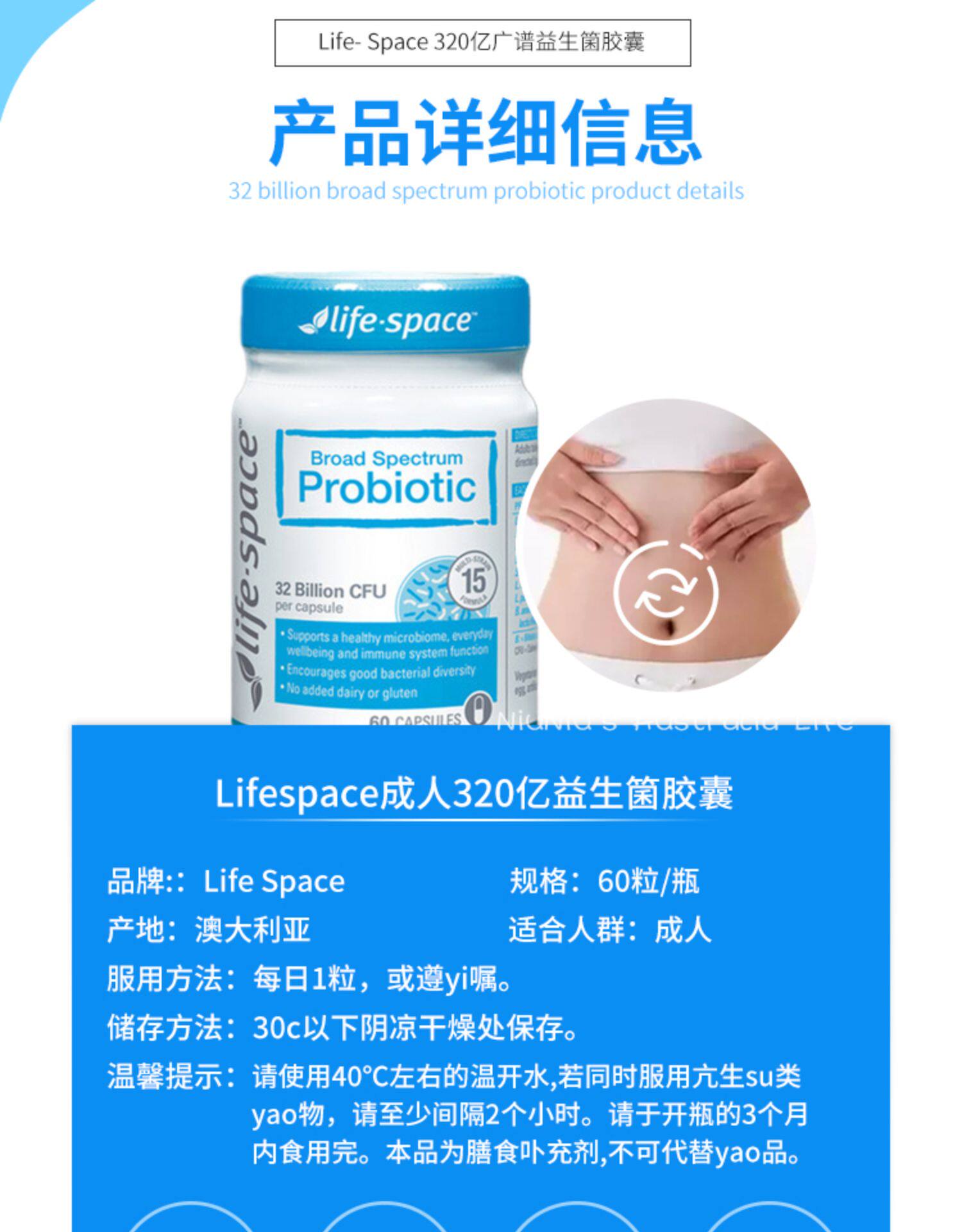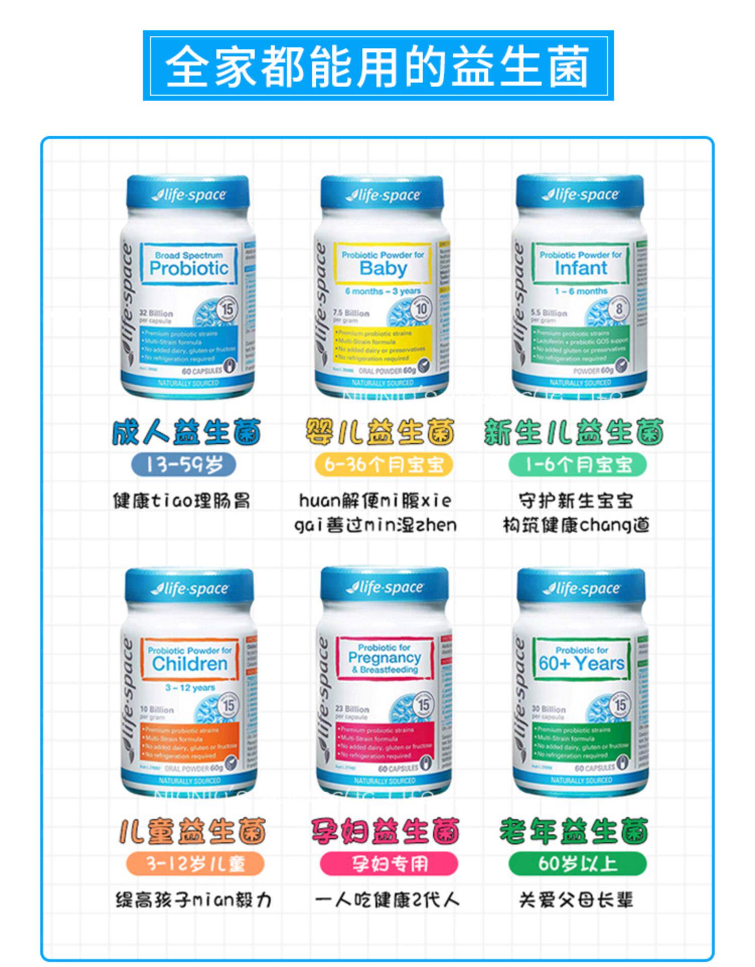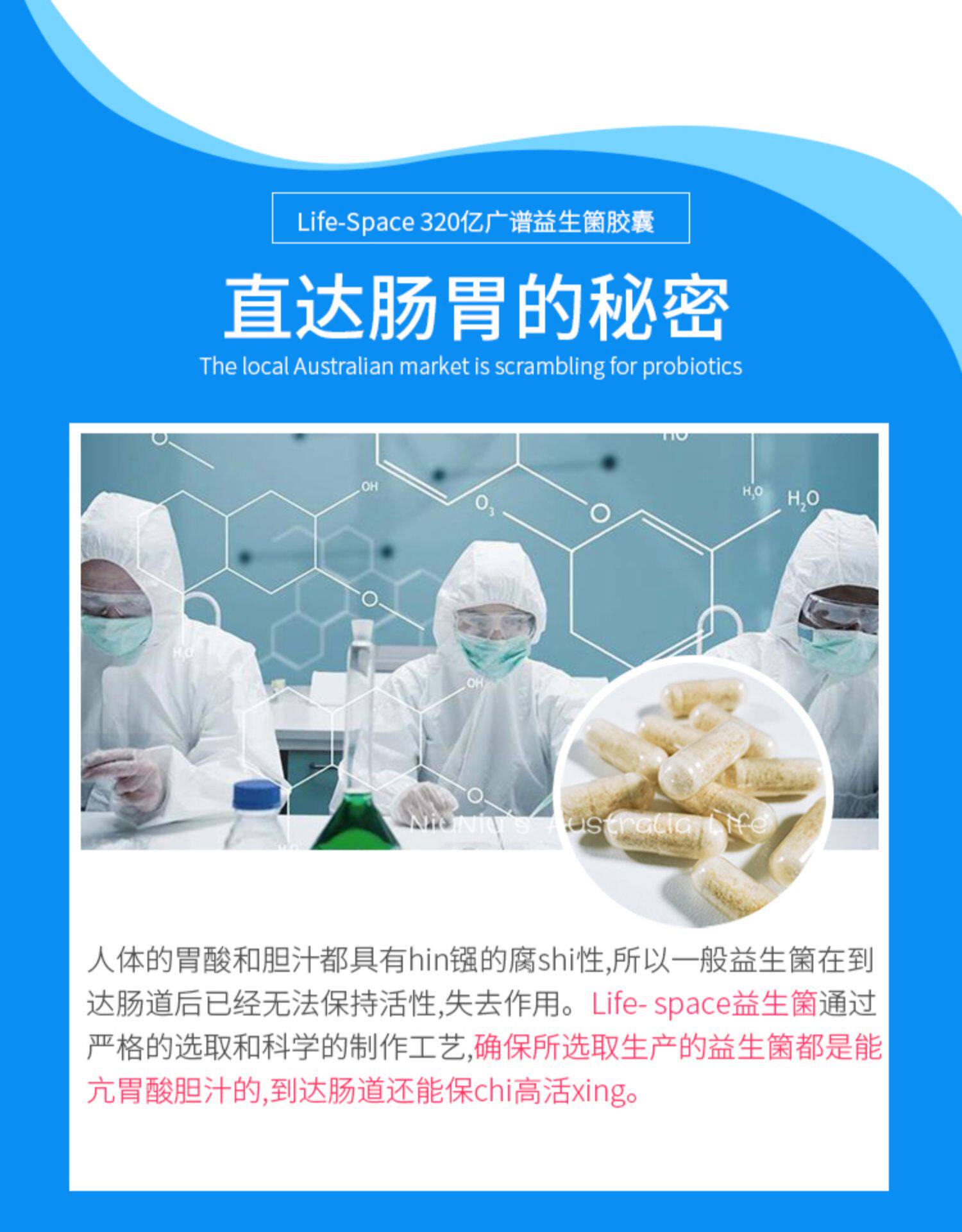 Австралийская жизненная космос взрослые широко -спектр пробиотическая капсула 60 розовый порошок Мужчины и женщины и пожилые активные бактерии пробиотики
