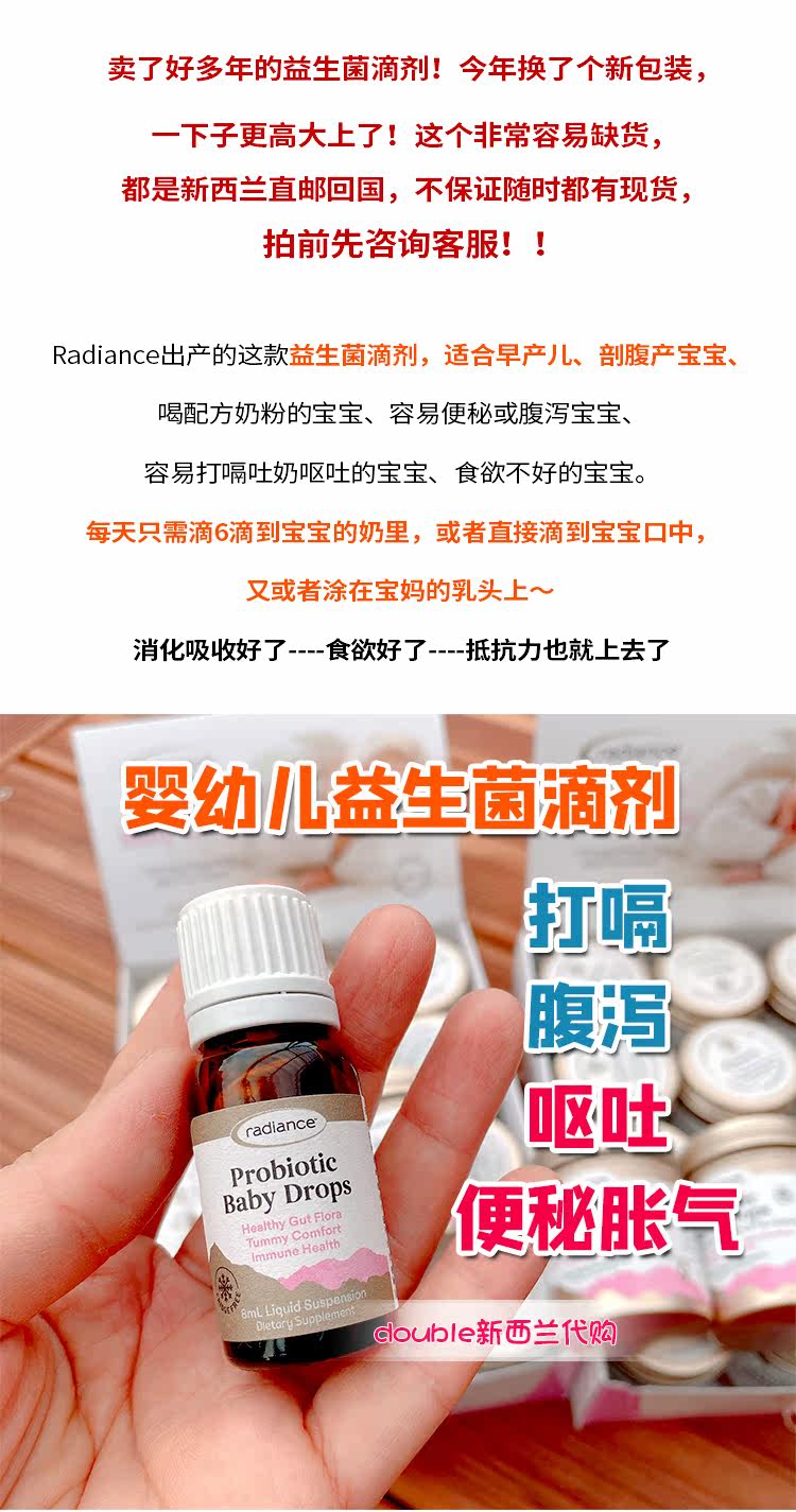 Новая Зеландия Radiance Pro-B Baby капли высокого класса жидких пробиотиков пробиотиков