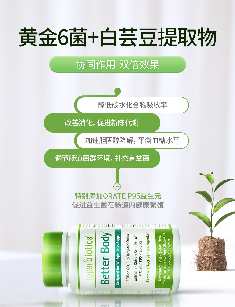 Hyperbiotics Hebaiyi White Bod Bean Agent Agent Anti -Chans и женщины теряют потерю веса, пробиотики