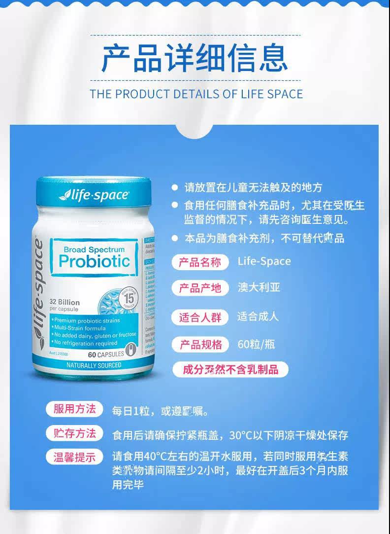 Life Space Взрослые Пробиотики 60 Австралийская Австралия регулирует желудочно -кишечное освобождение#l l 小