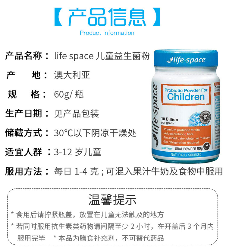 Австралийский жизненный космос детские детские пробиотики 3-12-летняя пробиотическая флора здоровье кишечника