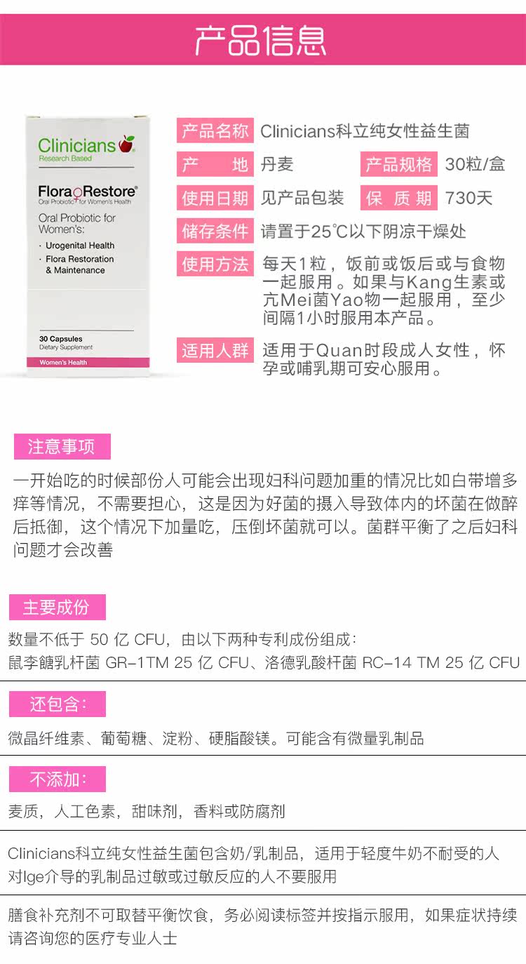 Австралия и Новая Зеландия Клинициански чистые женские пробиотики 30 Гинекология уход за урологиями