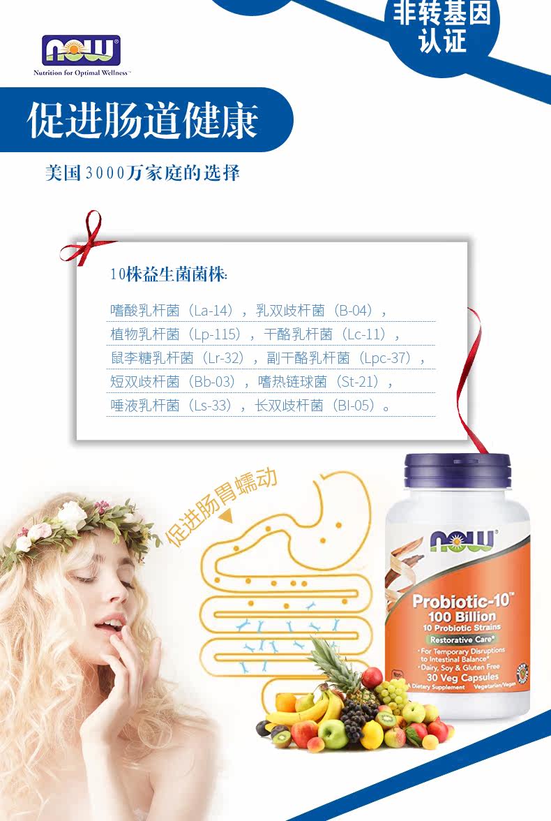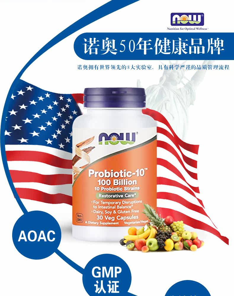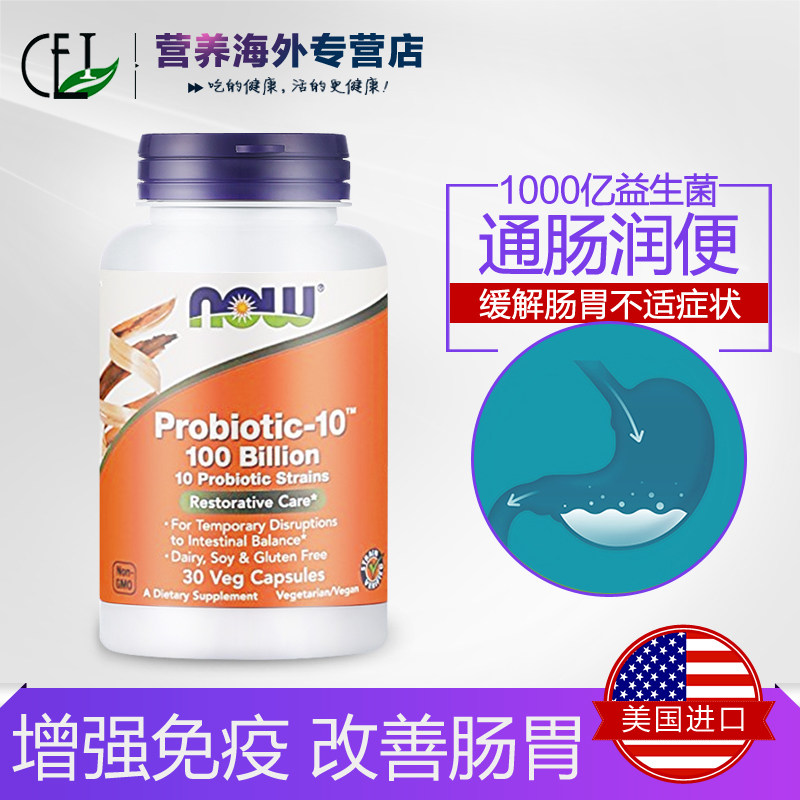 Теперь продукты питания noo 100 миллиардов пробиотического порошка порошка порошок столичный порошок мелодийная и желудочно -кишечная конституция 30 капсулы