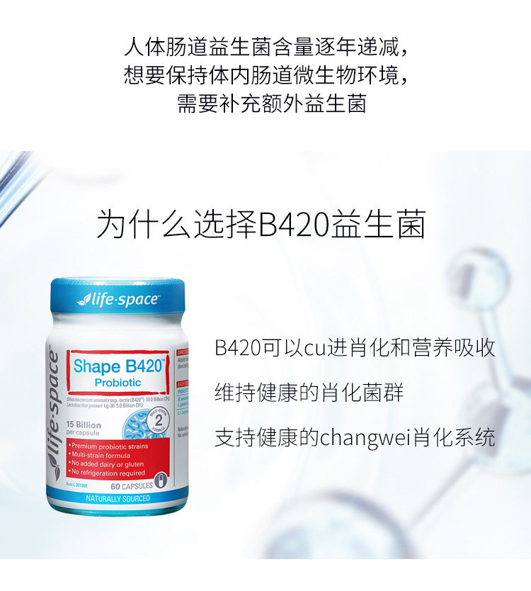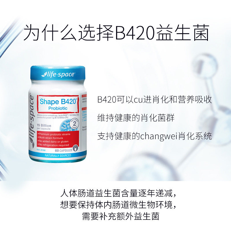 Австралийский пробиотики в области пробиотики Life Space B420 Управление телом взрослые и кишечник