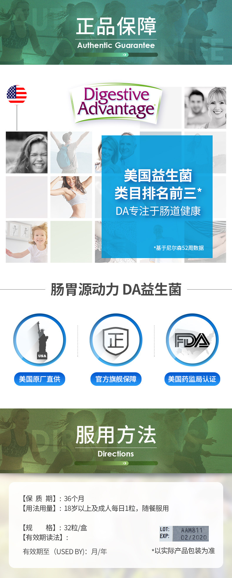 DA Пробиотик для взрослых. Желудочно -кишечные тракты Анти -диаргея помогает переваривать желудок пищевые пищевые пробиотики 32 капсулы