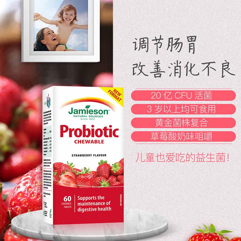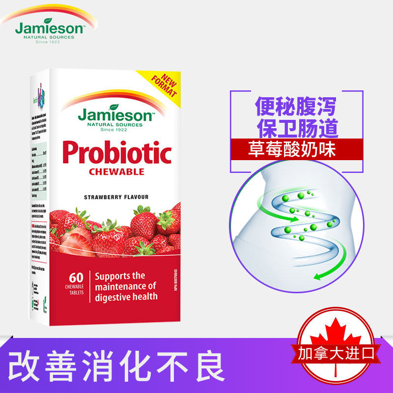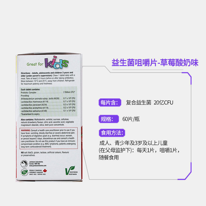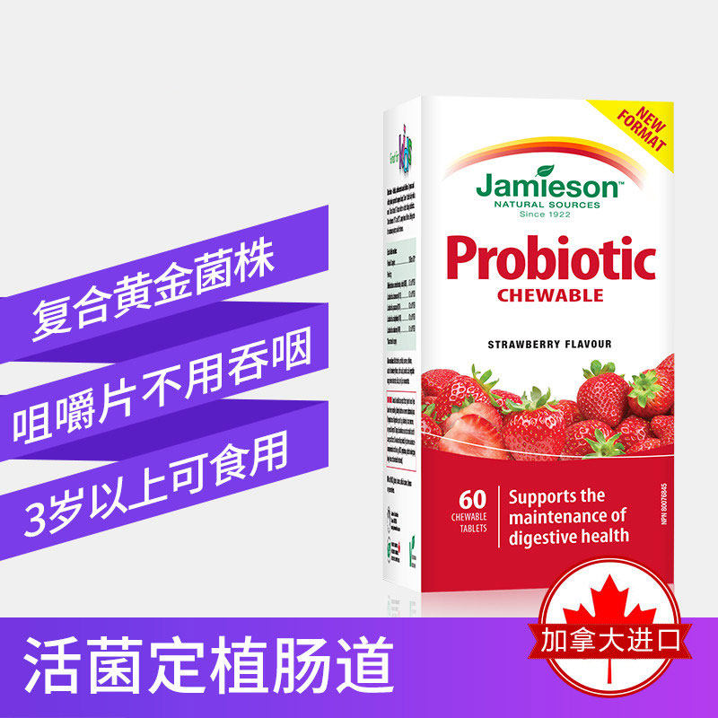Jamieson Детские пробиотические пережевывающие таблетки клубничные йогурские ароматы ребенка и здоровье кишечника