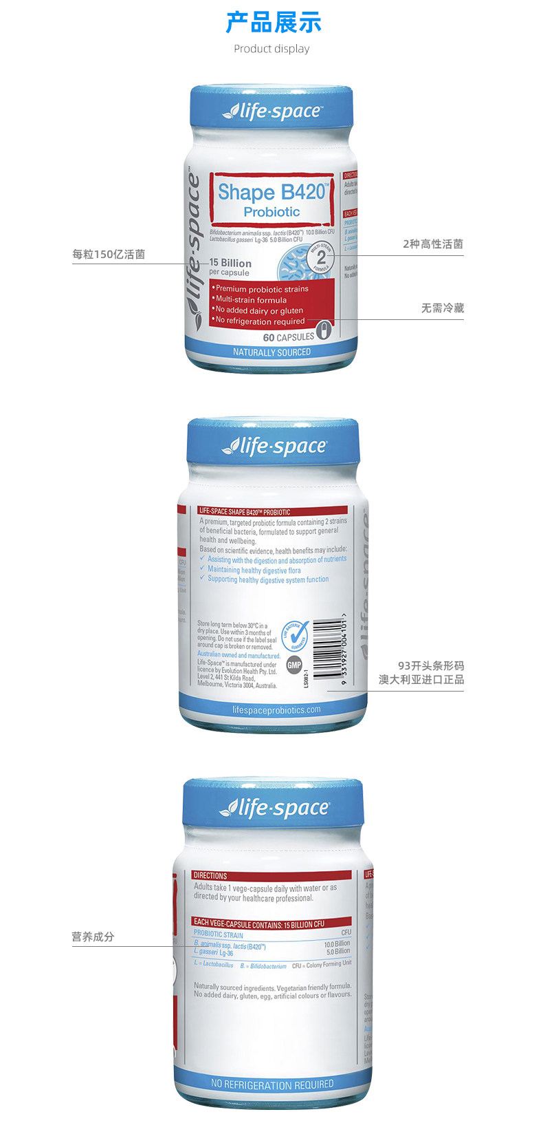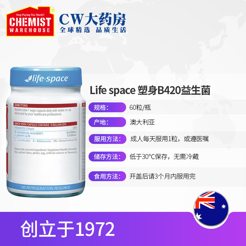 Австралийский жизненный космос B420 Пробиотический кондиционер для взрослых 60 капсул формы CW