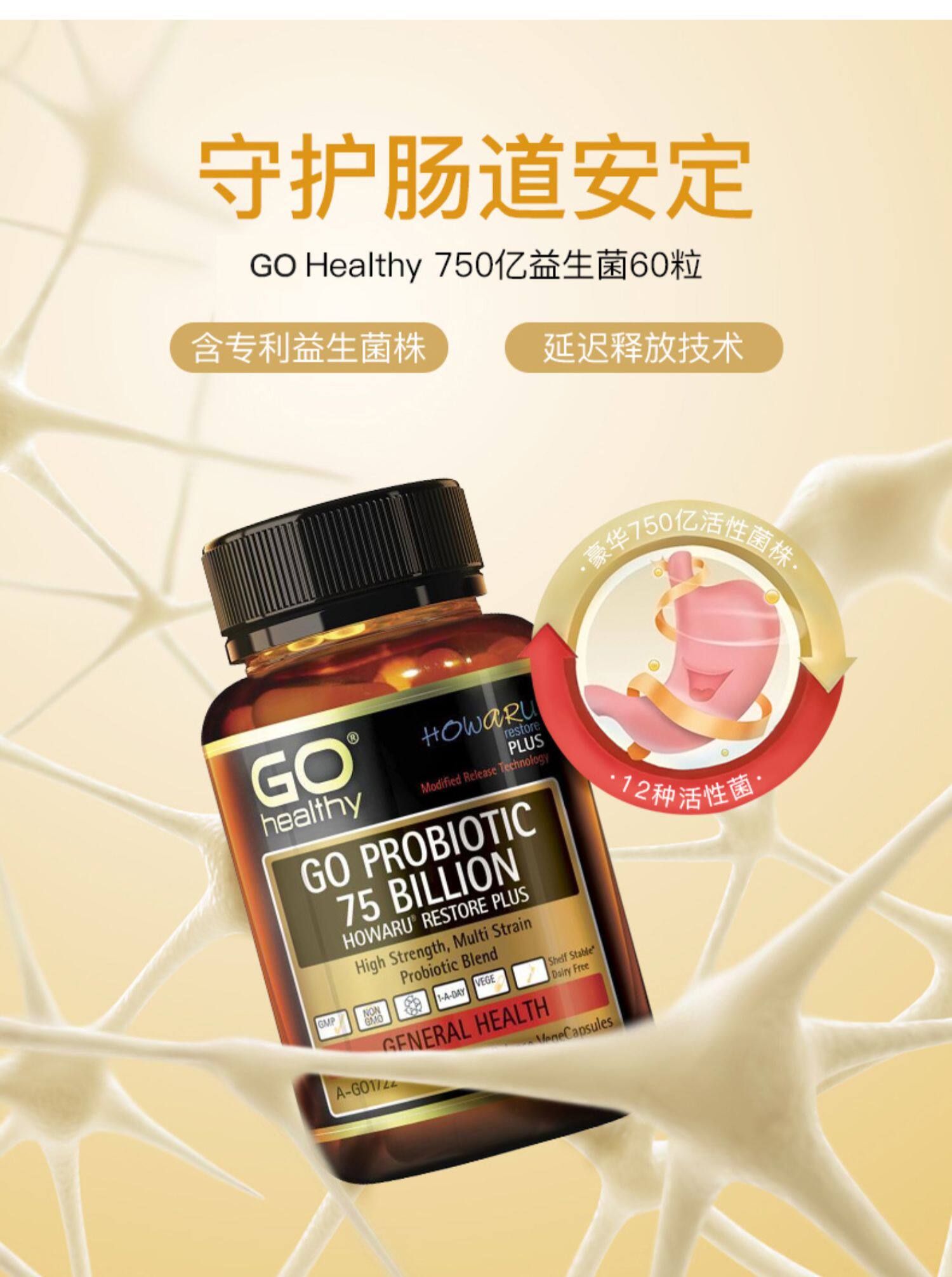 Go Healthy Source Пробиотики 60 Столичная помощь в области желудочно -кишечного режима регламентального регламента кишечника.