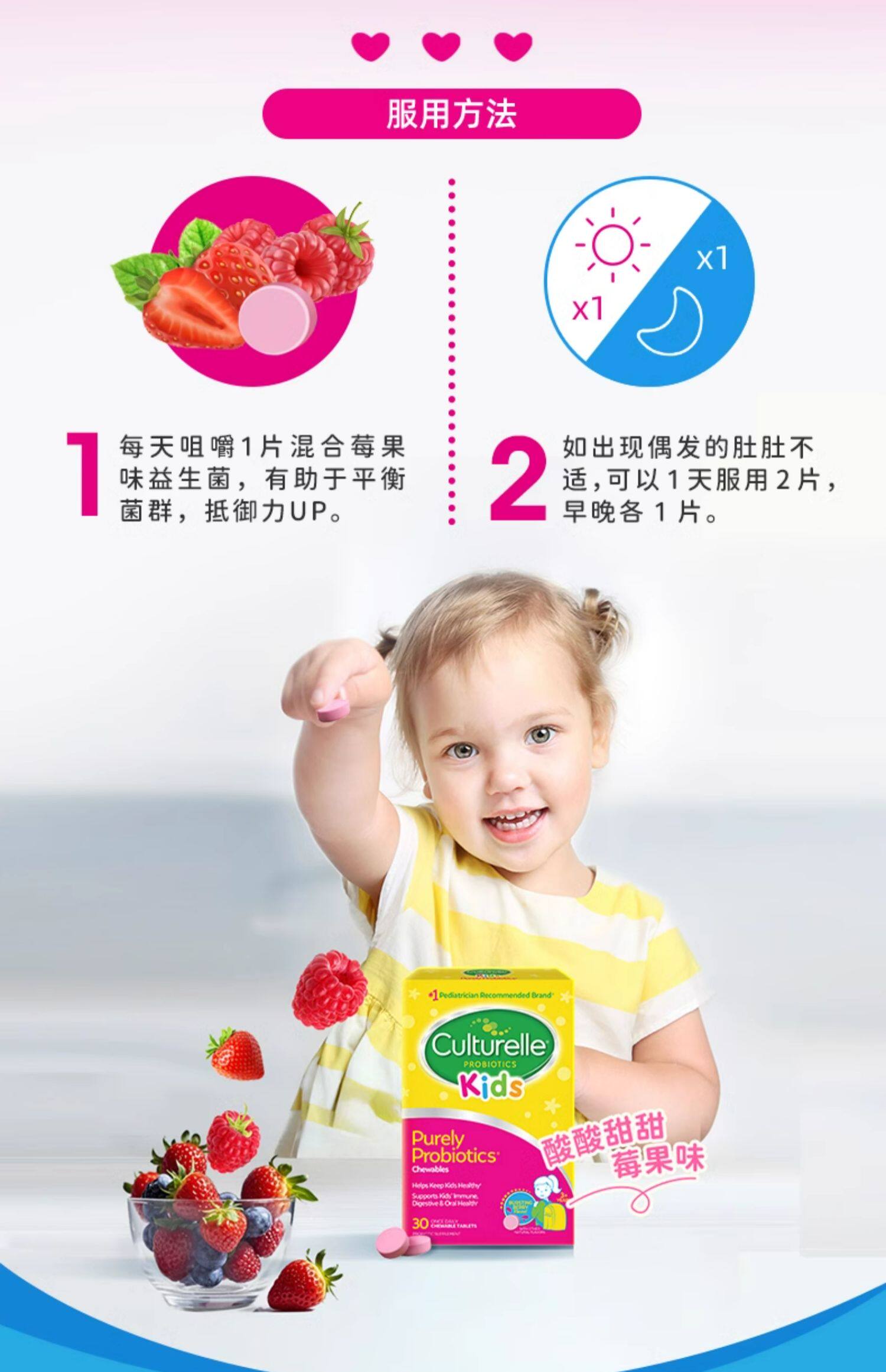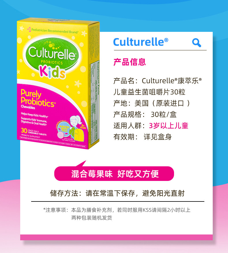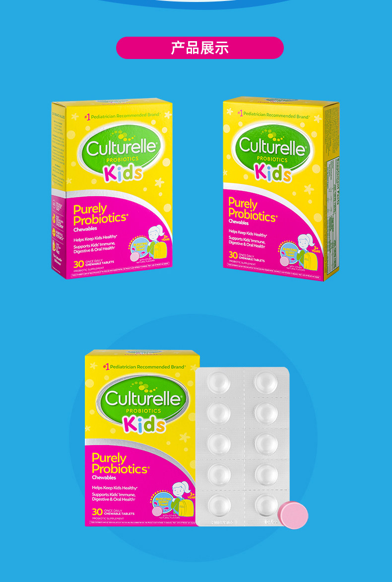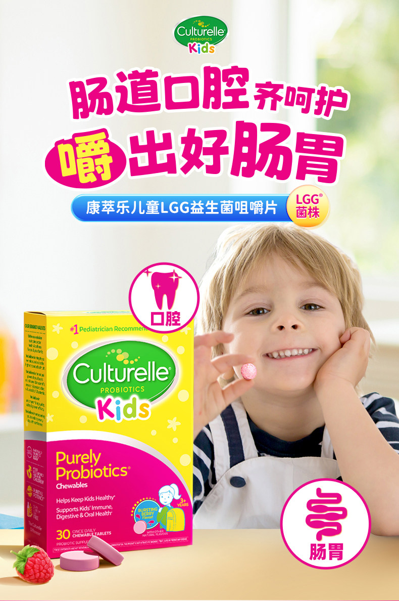 Culturelle Kangcuile Детские пробиотические жевальные таблетки для кондиционирования желудочно -кишечного кишечника и усиления иммунитета LGG 30 таблетки