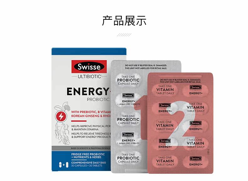 Swisse Ultibiotic Energy Plame+Пробиотическая капсула 30 судов+30 Мобилизация желудочно -кишечного тракта