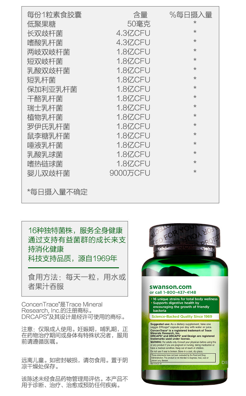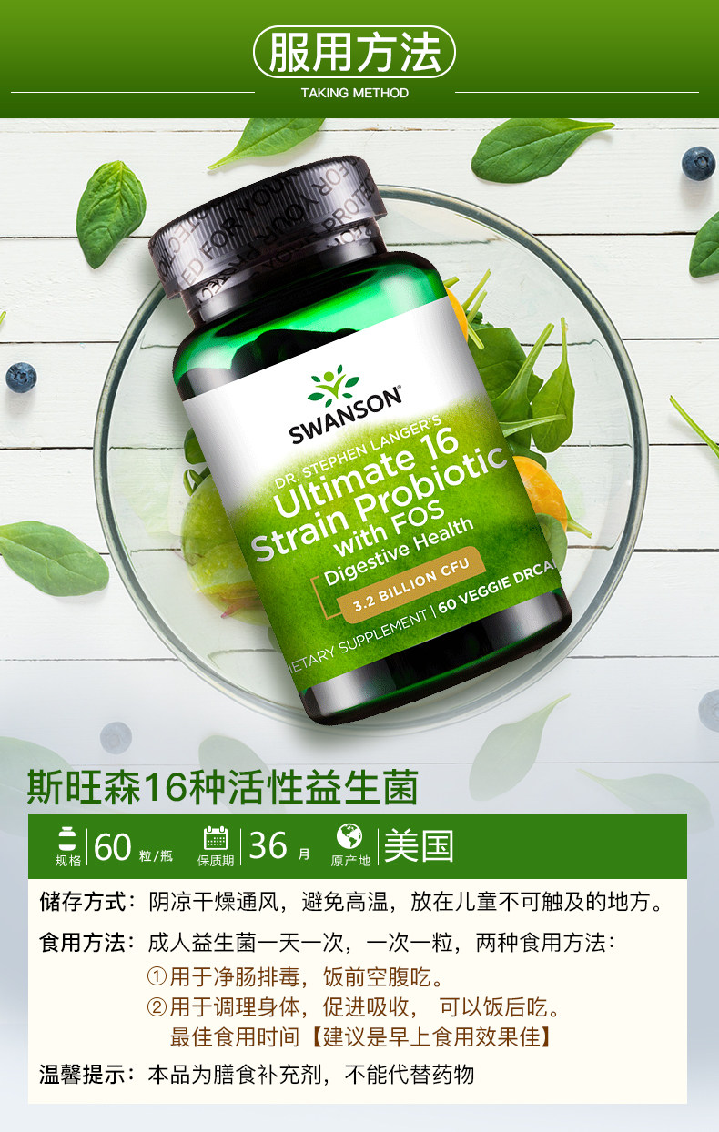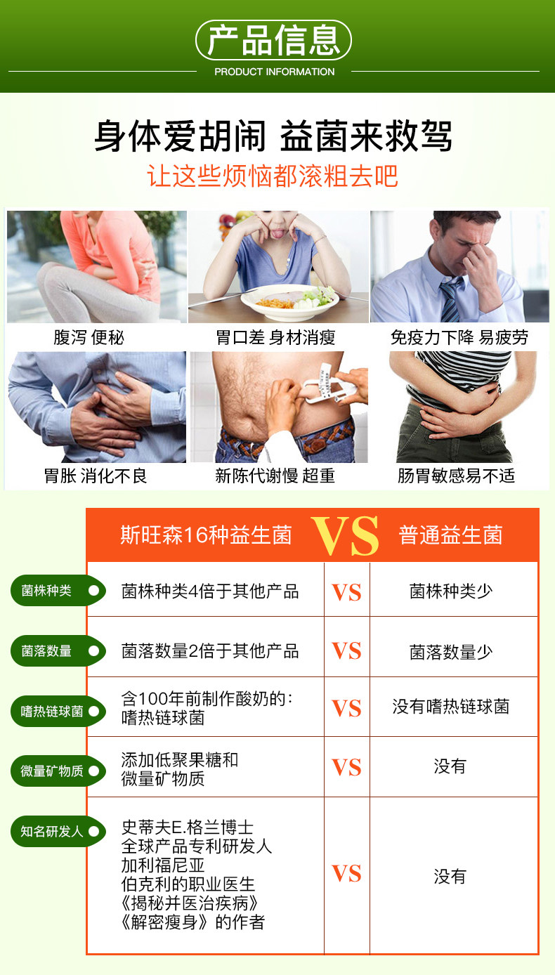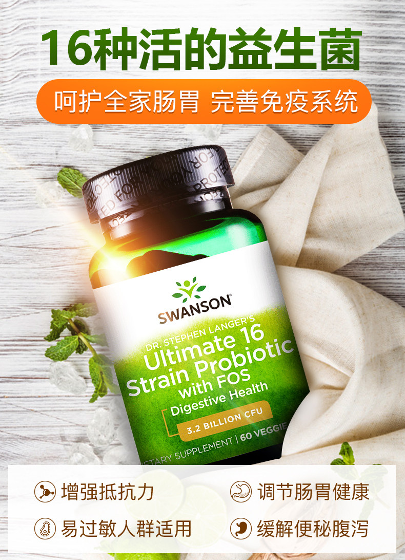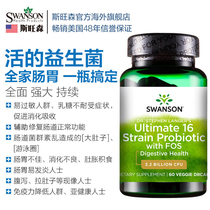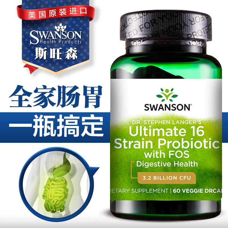 Swansen 16 взрослые пробиотические порошковые порошковые капсулы для взрослых желудочно -кишечных кондиционирования кишечных продуктов питания и импорта продуктов питания в Соединенных Штатах