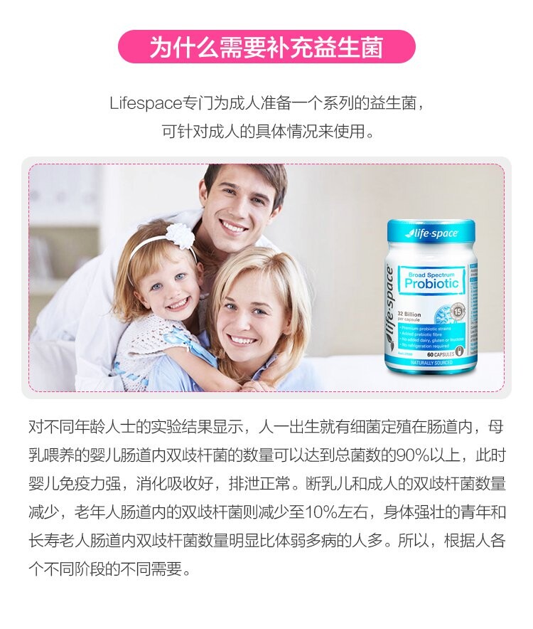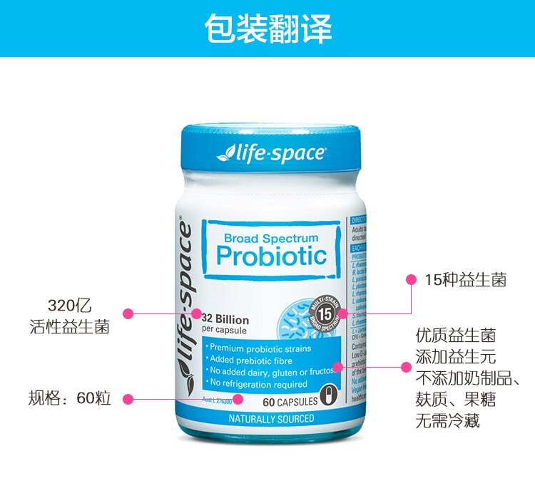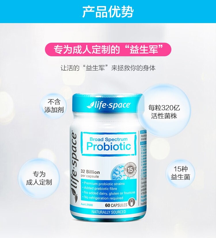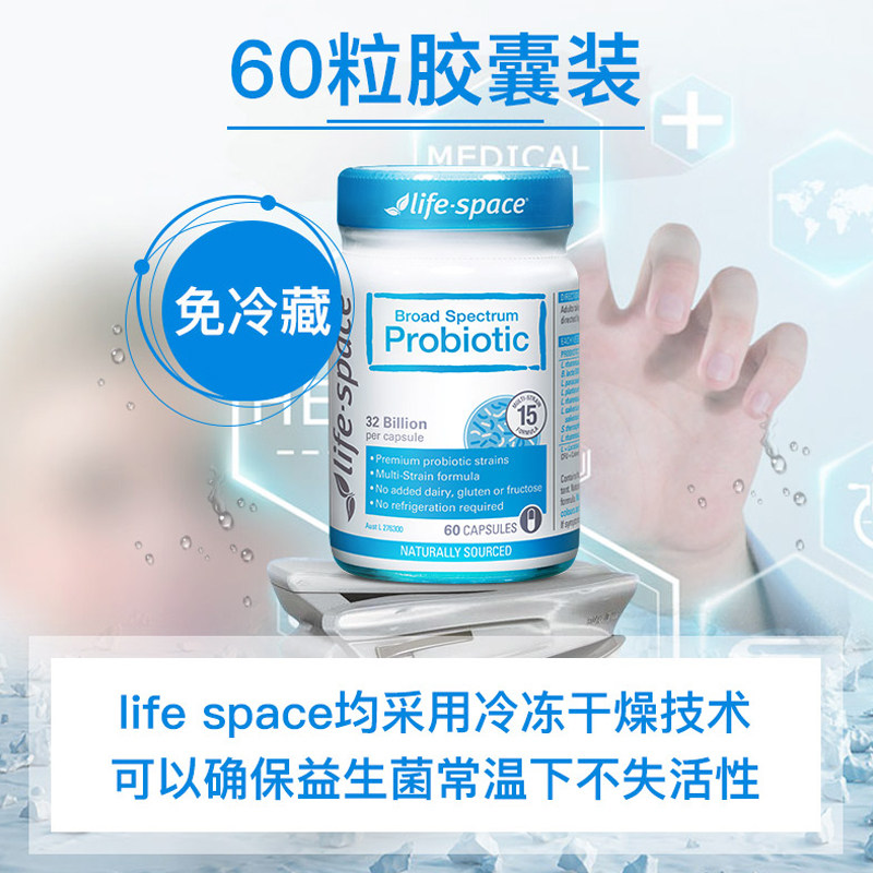 Австралия Life Space Взрослые пробиотики 60 зерна желудочно -кишечного желудочно -кишечного тракта улучшения иммунитета включают капсулы зонда юаней