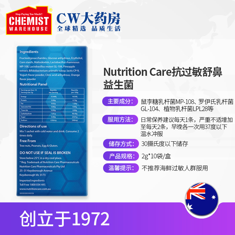 Уход за питанием против Allergic, чтобы успокоить пробиотику для носа. Дети взрослой нос, нос, нос, зуд NC Australia