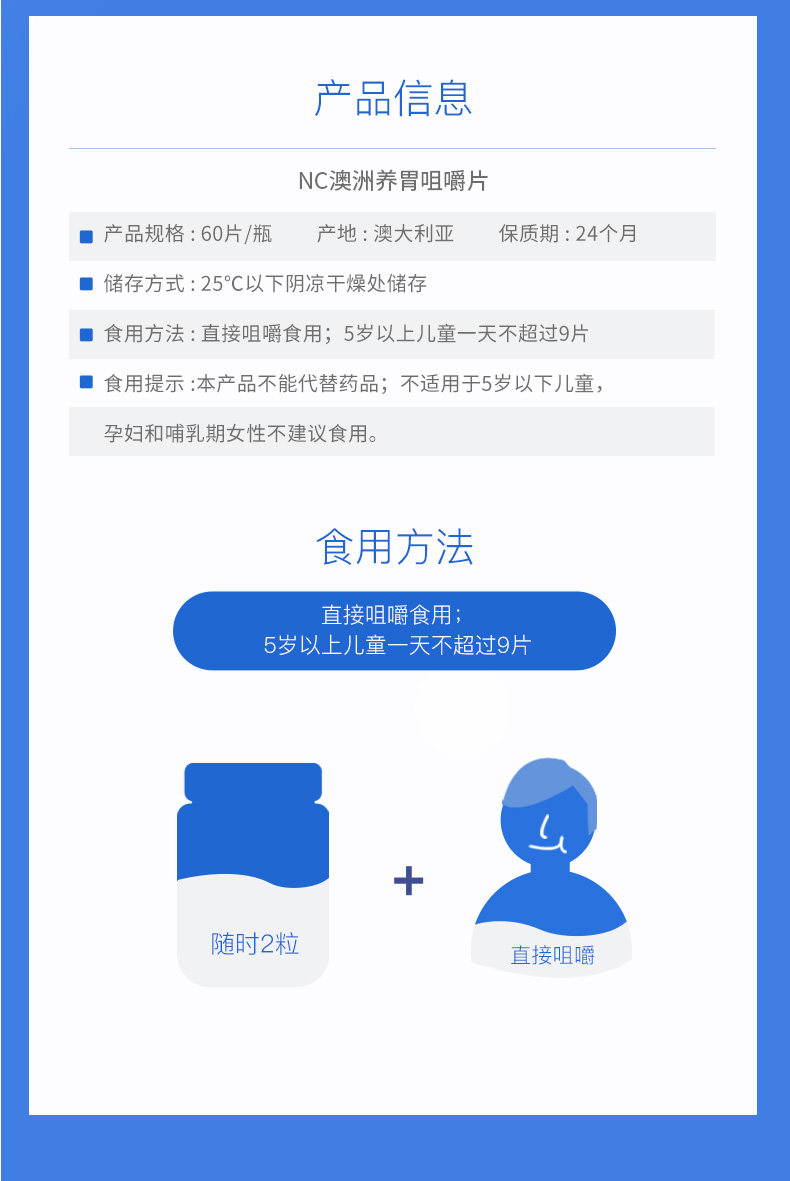 [Новый продукт] NC Австралийский медовый питатель желудок жевать таблетки Взрослые дети для регулирования желудочно -кишечного ремонта Слизистой оболочки желудка 60 таблеток