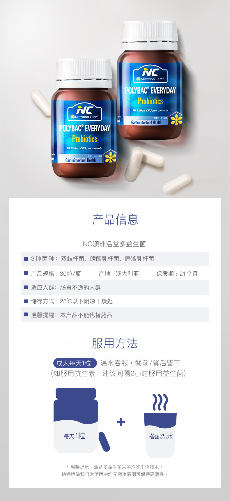 Австралийский NC Living Perses Multi -Warm Probiotics 15 миллиардов кондиционирующих желудочно -кишечных запорок.
