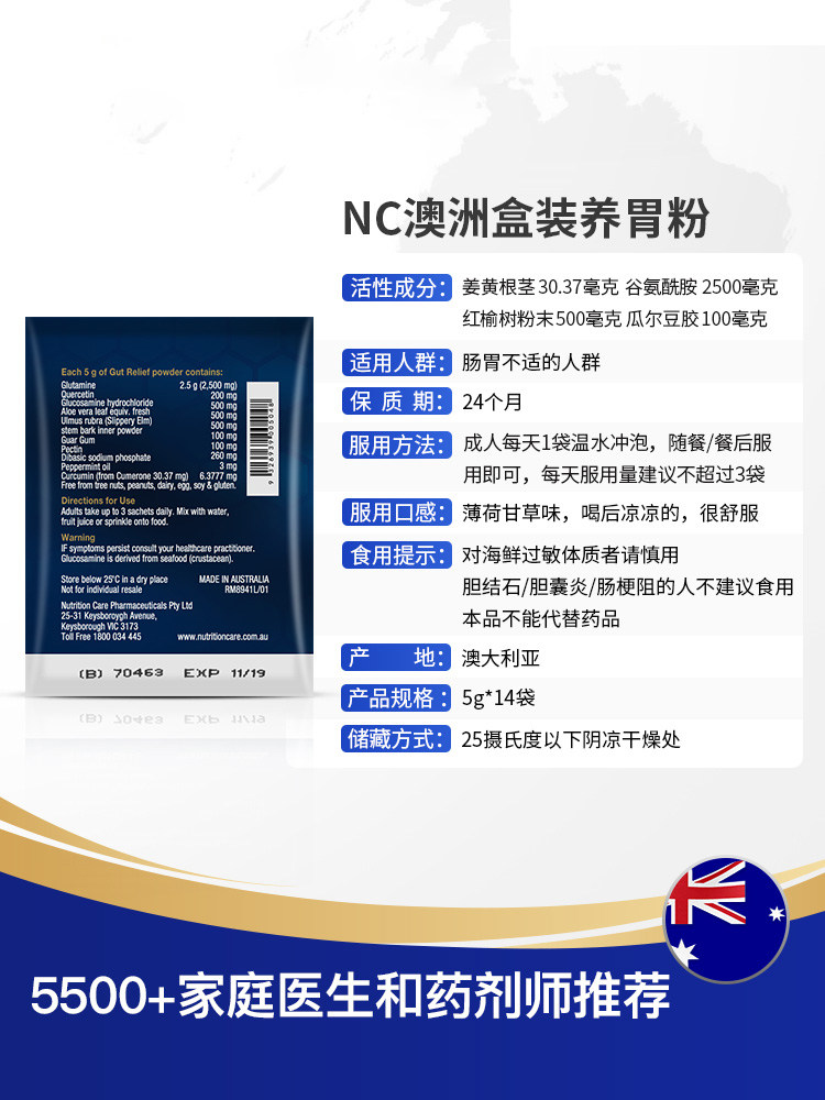Австралийский NC питательный желудочный порошок 14 пакетов взрослых питательны для пищи желудка желудочно -кишечная и желудочно -кишечная часть со взрослыми пробиотиками, чтобы успокоить метеоризм