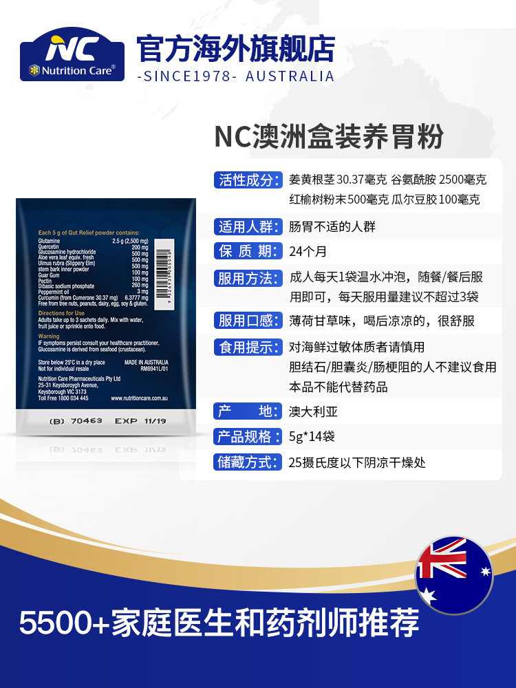 NC Australia от желудочного порошка 14 мешков взрослых питает пищу желудка желудочно -кишечного и фазана, чтобы успокоить желудок желудка