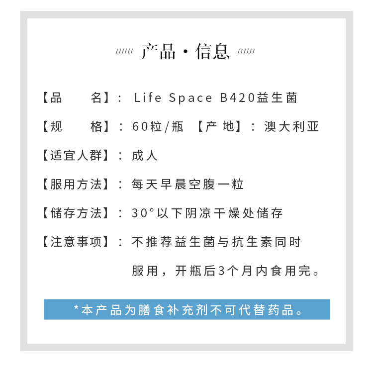 Австралийский жизненный космос B420 Пробиотики 60 Капсулы B420 Взрослые мужчины и женщины бодибилдинг Jike Yiyi