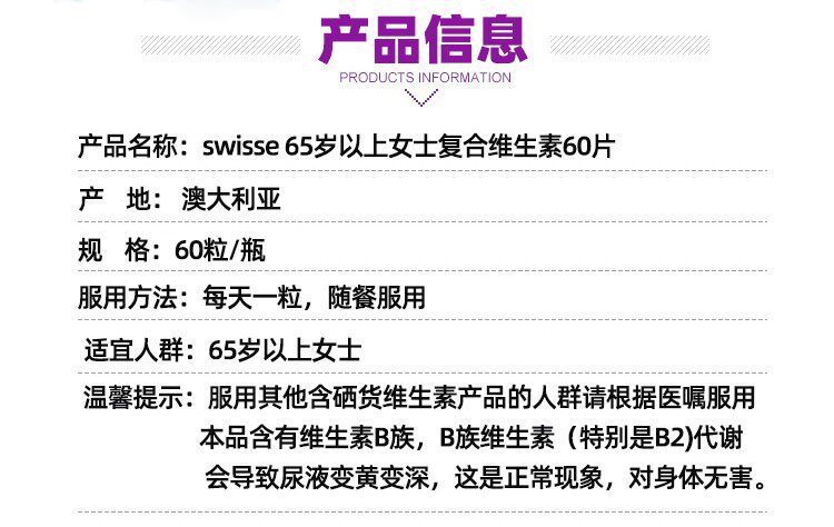 Австралийская покупка Swisse среднего и пожилых женщин 65 -летняя+композитный витамин Комплексный витамин плюс 60 капсул