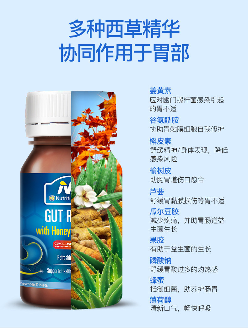 Австралия NC питает желудок, жевательные таблетки, чтобы защитить желудок и взять с собой Гальвиан, желудочно -кишечная поза, взрослые дети, чтобы регулировать желудок и желудок