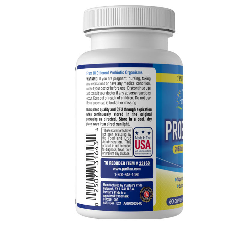Puritan's Pride Lactobacillus acidophilus/пробиотики/молочнокислотные бактерии содержат 60 таблеток из 20 миллиардов бактерий