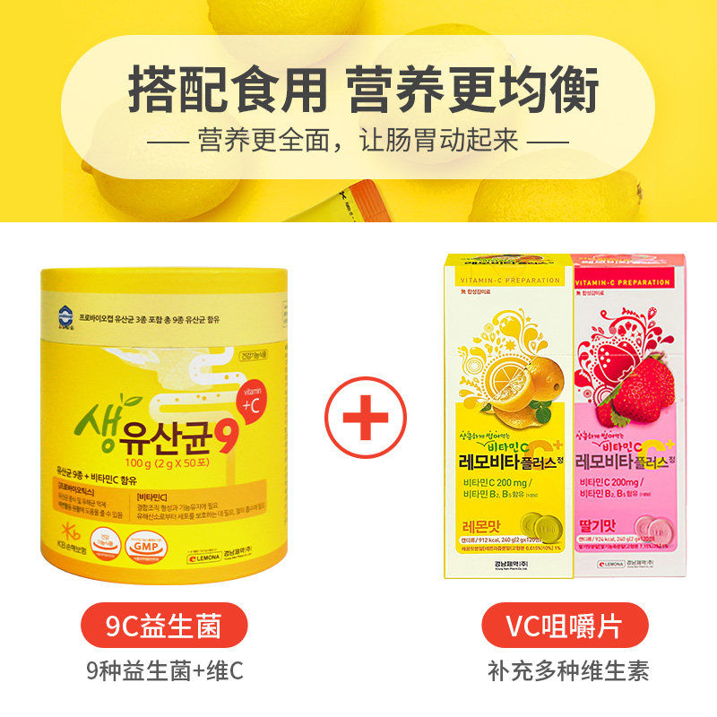 [Прямой бизнес] Южная Корея импортировал Qingnan Желченый толстый мужчина Lemona9c Витамин VC Пробиотический порошок 50*3 банки
